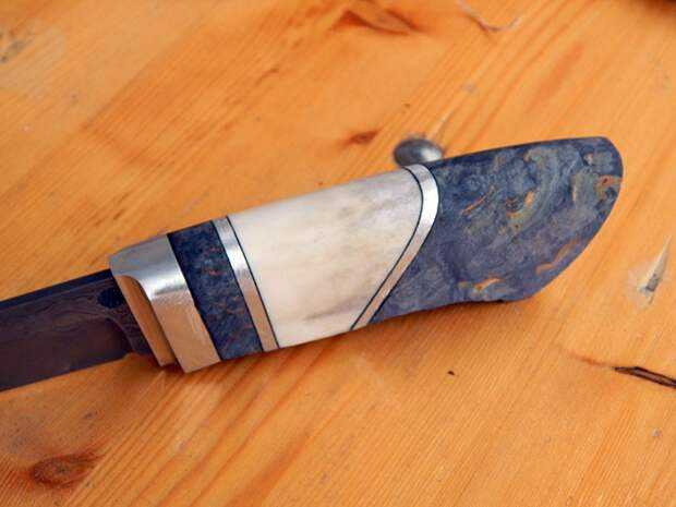 Для изготовления ручки можно использовать различные материалы — дерево, кожу, пластик, латунь, алюминий и даже кость. Главное — чтобы они хорошо сочетались по толщине и плотно прилегали друг к другу. Часто мастера выбирают чередование твердых и мягких элементов, чтобы добиться интересного внешнего вида и удобства при использовании ножа. Дерево удобно в обработке и придает тёплое ощущение в руке, а металл добавляет прочности и веса.